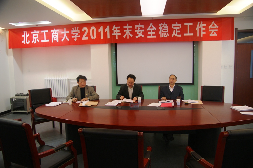 12月28日學校在阜成路校區召開2011年末安全穩定工作會。黨委副書記盧思鋒主持會議并講話,呼文亮副校長布置了元旦春節期間學校安全穩定工作的任務。各單位安全穩定的第一責任人參加會議。