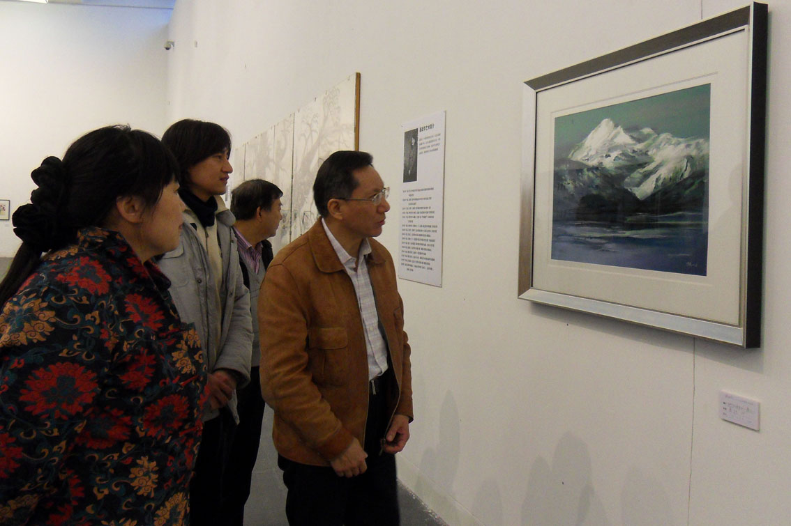 12月27日,謝志華副校長應藝術與傳媒學院邀請參觀在清華大學美術學院展覽館舉辦的“一路同行——15人造型藝術作品展”。在藝術與傳媒學院副院長羅子明的陪同下,他認真參觀了各位老師的作品,并對老師們的藝術作品給予了充分的肯定。
