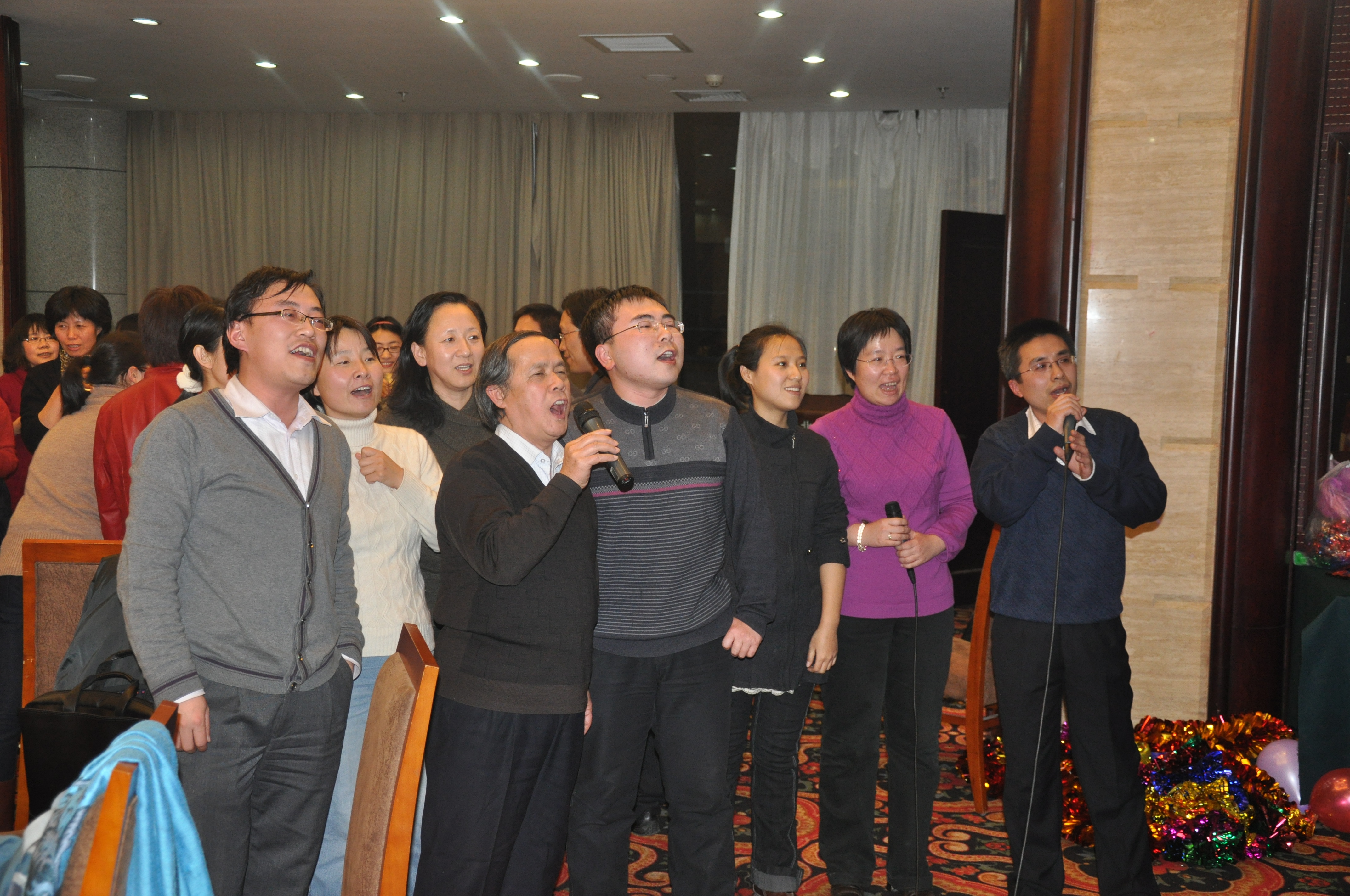 松的聯歡時間,老師們一掃三尺講臺上的嚴肅,紛紛大展風采,獻出了精彩的節目。青年老師的《明天會更好》唱出了全體計信人的心聲;實驗中心的《讓我們蕩起雙槳》青春十足;電子信息系的《美了美了》激情飛揚;合唱《年輕的朋友來相會》、《沒有共產黨就沒有新中國》、《朋友》讓活動現場更加熱鬧非凡。此外,郭培源的《莫斯科郊外的晚上》、王小藝的《恭喜發財》、韓寶龍與莫倩的《霸王別姬》給大家留下了深刻印象,方德英副校長的《常回家看看》將聯歡活動推向了高潮。