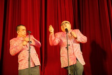 全體校領導集體亮相,在新年致辭前合唱歌曲《歌唱祖國》,使現場觀眾驚喜萬分,將晚會推向第一個高潮。嘹亮的歌聲抒發了對祖國母親的熱情謳歌,動情的致辭表達了對學校及全體師生的美好祝福。