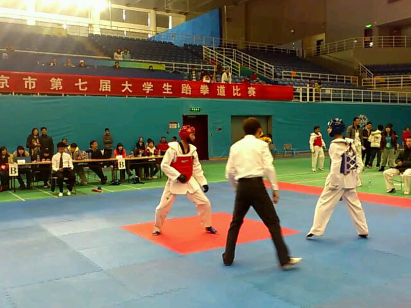 2011年12月10日,我校跆拳道代表隊參加了在北京科技大學舉行的2011年“東方杯”北京市第七屆大學生跆拳道比賽。本屆比賽我校共派出14名參賽隊員,分別在男子組和女子組都取得了優異成績。男子組方面:楊弋戈獲58kg項目第二名;傅秋辰獲62kg項目第二名;李岸獲78kg項目第三名。女子組方面:李舒婷獲72kg項目第一名;張琳獲63kg項目第五名;姜虹獲+72kg項目第五名;黃嵐獲51kg項目第五名;王慧暄獲-47kg項目第五名;欒圓園獲67kg項目第五名。此外,我校代表隊獲得了“體育道德風尚獎”,教練員苗建廷老師榮獲“優秀教練員”稱號,姜虹同學榮獲 “優秀運動員”稱號。