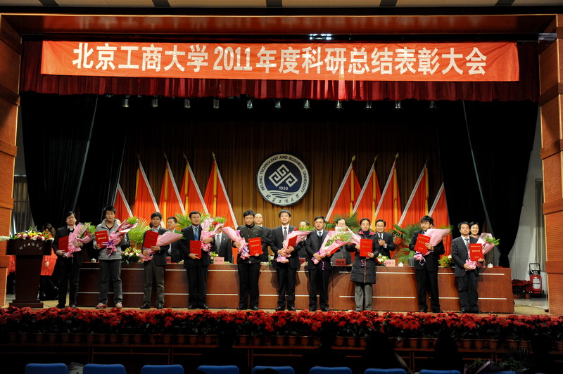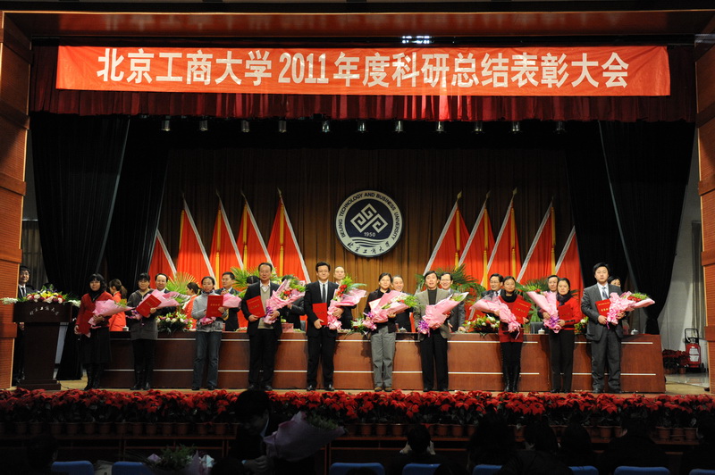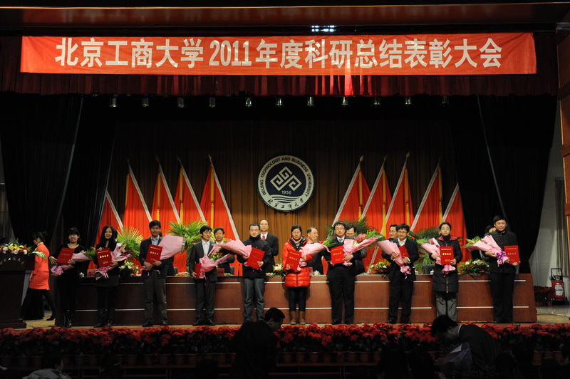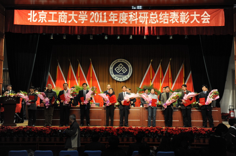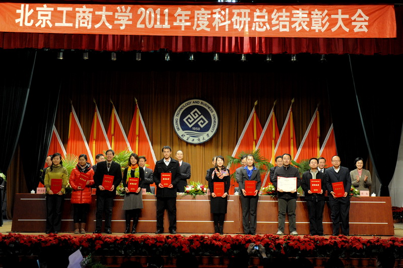 孫寶國副校長宣讀了省部級獎勵、國家級項目立項、省部級項目立項和北京工商大學(xué)2011年科學(xué)研究優(yōu)秀成果獎名單獲獎單位及人員名單,李朝鮮副校長宣讀了個人科研排名前10名、科研單位完成工作量總分排名前3名、科研管理先進(jìn)單位、科研管理先進(jìn)個人、科協(xié)工作先進(jìn)個人的名單(名單另發(fā))。校領(lǐng)導(dǎo)為獲獎單位代表和個人頒發(fā)了榮譽(yù)證書和獎牌。