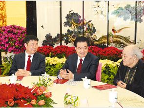 金龍起舞賀新春,皓月當空慶團圓。在中華民族傳統節日元宵節到來之際,中共中央6日晚在人民大會堂舉行聯歡晚會。胡錦濤、吳邦國、溫家寶、賈慶林、李長春、習近平、李克強、賀國強、周永康等黨和國家領導人出席晚會,同首都知識界代表歡聚一堂、共度佳節。