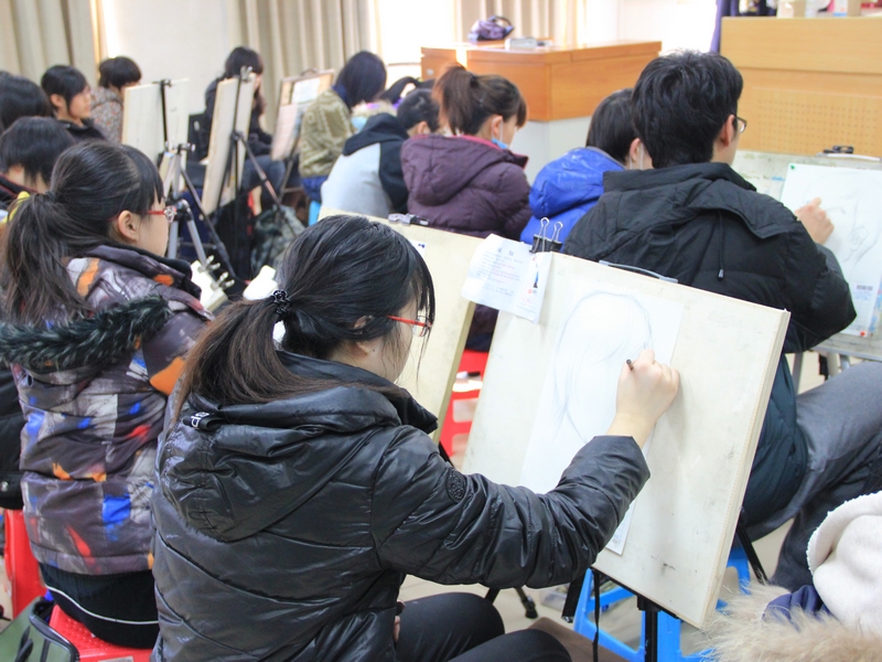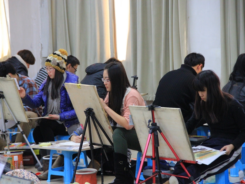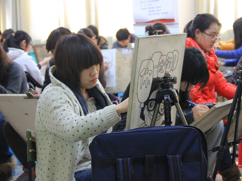 校考北京考點的考試火熱進行中。考生們正用他們手中的畫筆描繪心中的夢想和美好的明天。