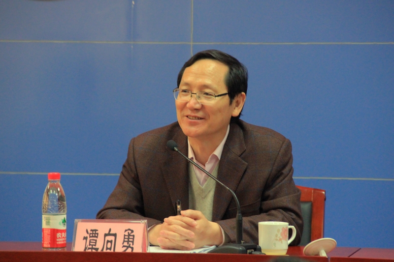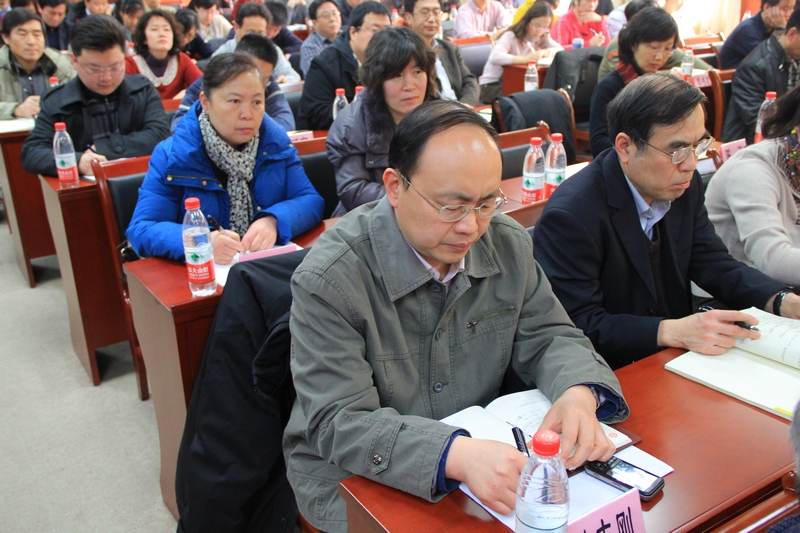 校長譚向勇在會上主要從今年學校工作的指導思想、十項重點工作、工作分工與協調三個方面做了主題報告。譚校長分析了學校改革發展所面臨的形勢和任務,指出今年學校工作的指導思想是穩中求進,強調在工作中要把握四個原則:一是價值與理念;二是創新和完善;三是基層和細化;四是合理和效率,要積極推進學校內涵式發展,穩步推進學校各項工作。