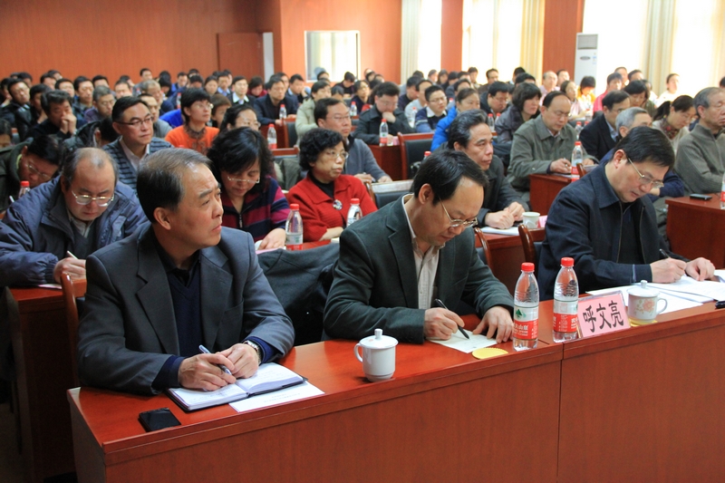 校領導孫堯東、譚向勇、盧思鋒、張德玉、孫寶國、李朝鮮、張耘、呼文亮、方德英和市教工委聯絡員畢孔彰及全體中層干部、教授代表、民主黨派人士代表、離退休教職工代表參加了會議。大會由校黨委書記孫堯東主持。