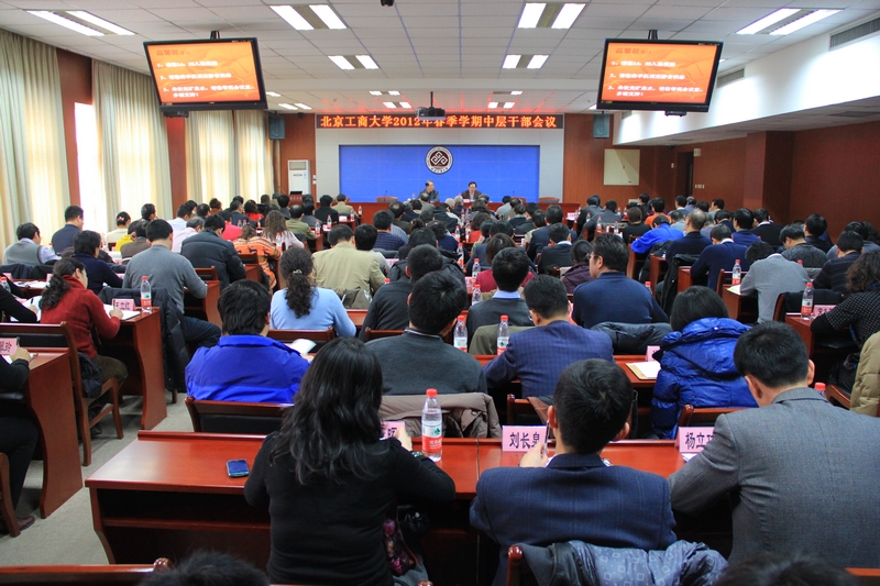 222日下午,學校在阜成路校區召開2012年春季學期中層干部會議。會議主要任務是部署安排學校今年的重點工作,統一認識,明確工作重點,加快推進學校建設高水平、特色鮮明的教學研究型大學的進程。