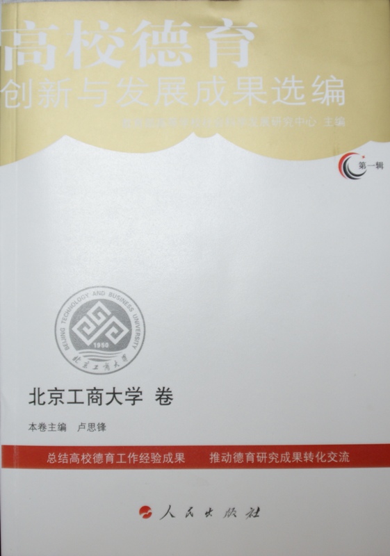 日前,《高校德育創(chuàng)新與發(fā)展成果選編---北京工商大學(xué)卷》出版。此書由教育部高等學(xué)校社會(huì)科學(xué)發(fā)展研究中心邀請(qǐng)并資助我校參與編輯。從2011年暑假開始,學(xué)生處、團(tuán)委、馬克思主義學(xué)院、黨委宣傳部、黨委組織部、研究生工作部等單位相關(guān)人員在盧思鋒副書記的領(lǐng)導(dǎo)下,組成編委會(huì),利用暑期對(duì)近十年來,特別是16號(hào)文件以來我校德育工作的理論與實(shí)踐成果進(jìn)行了回顧、梳理與總結(jié)。編委會(huì)經(jīng)過多次研討、座談,歷時(shí)三個(gè)多月,整理翻閱文件三百多篇,最終確定了《選編》的總體框架與章節(jié)結(jié)構(gòu)、入選文章。