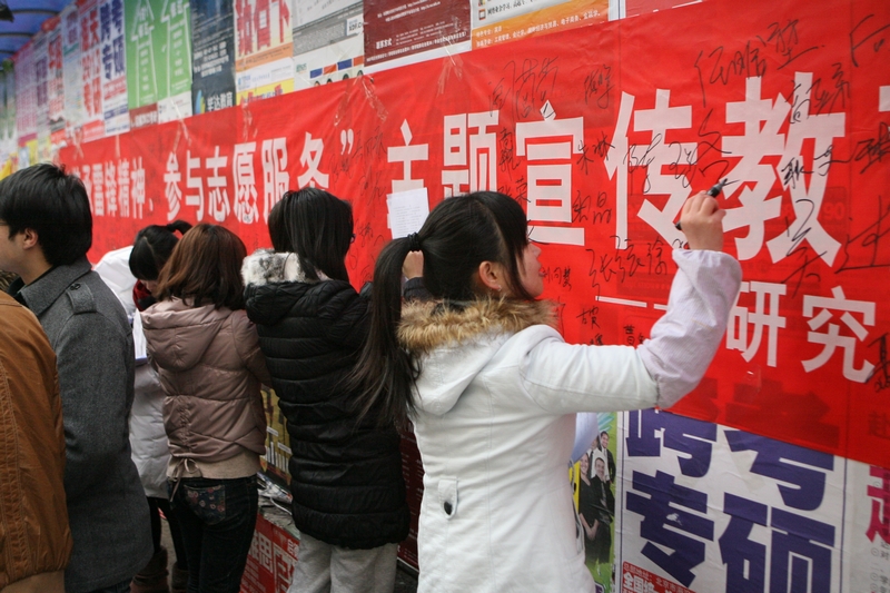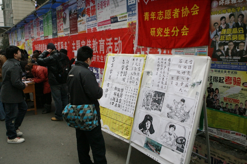 為響應學校 “學雷鋒、樹新風——2012年大學生志愿服務行動”號召,研究生部團總支在東區食堂門口專門設計了條幅簽名活動。每位駐足參與活動的同學都在條幅上鄭重簽下自己的名字,意味著大家發出了“從小事做起,投身志愿活動”的行動宣言。紅色的長條幅、端莊的文字,不僅是本次活動的宣傳口號,更是“雷鋒精神”的代表。一位受訪同學談到:“無論社會多么浮躁、功利之風如何盛行,對助人為樂、與人為善等道德價值的弘揚不能放棄,從小事做起,從身邊做起,積極投身志愿行動和公益活動是傳承新時期‘雷鋒精神’的最佳途徑。”