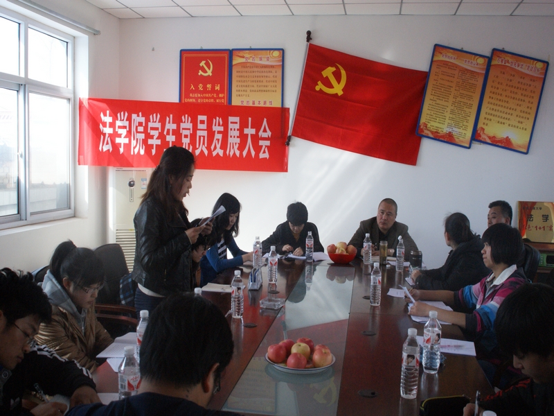 面對著鮮紅的黨旗,在法學院良鄉校區學生黨支部書記姚林娜的主持下,四位發展對象激動而懇切地宣讀了入黨志愿書,表達了她們積極向黨組織靠攏的堅定決心和成為一名中國共產黨員的熱切希望。經過嚴格的組織發展程序后,全體老黨員和四名新黨員一起高聲朗誦入黨誓詞。