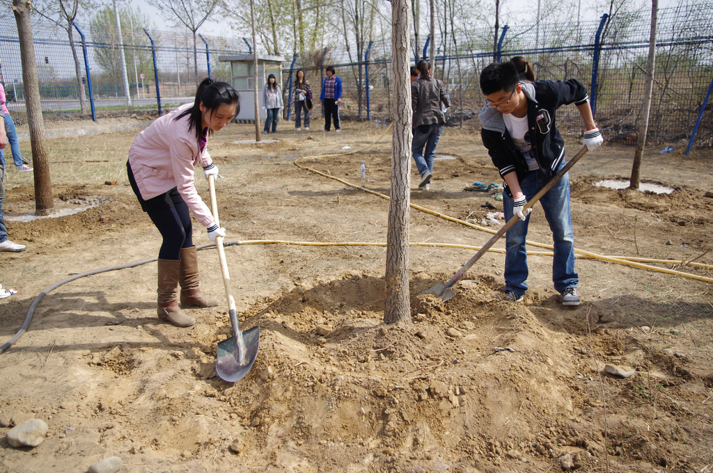 同時,商學院學生黨員志愿服務團與北京工商大學根與芽協會共同舉辦了志愿植樹綠化活動,商學院各學生黨支部共有十九名學生黨員以及根與芽社團成員一起參加本次活動。 活動期間,學生黨員們同根與芽社團成員們齊心協力,相互幫助,共同植樹,為校園環境的綠化做出自己了一份努力。在活動中,學生黨員們相互交流,共同向綠化人員學習植樹綠化知識。植樹結束后,綠化公司的負責人充分肯定了我們學生黨員甘于奉獻、吃苦耐勞的精神和積極參與環境綠化的熱情。