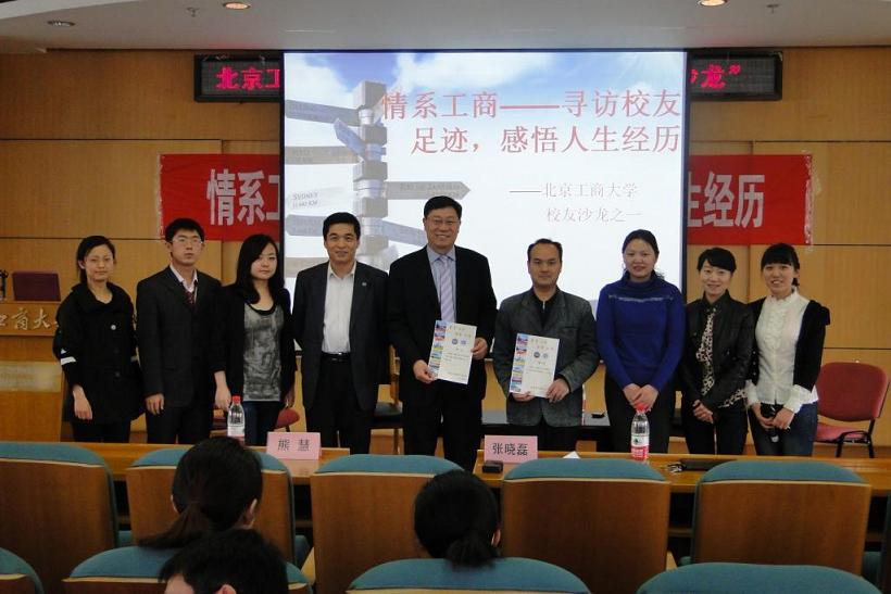 4月11日下午,以“情系工商—尋訪校友足跡,感悟人生經歷”為主題的研究生“校友沙龍”首場活動在阜成路校區舉行。此次活動由校友會研究生分會主辦,研究生職業規劃研究中心承辦,在校友會的大力支持下,黃子龍和孫飛兩位校友應邀到我校參加了活動。