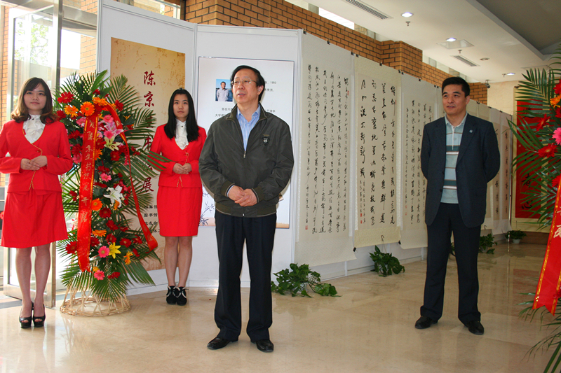 4月26日,"陳京生書法作品展"在我校阜成路校區(qū)新開(kāi)館的圖書館大廳舉辦開(kāi)幕,展覽由學(xué)校檔案館聯(lián)合圖書館、離退休工作處、校友會(huì)辦公室、團(tuán)委主辦,保衛(wèi)處、后勤處提供后勤保障。學(xué)校副校長(zhǎng)孫寶國(guó)出席開(kāi)幕式并致辭,檔案館館長(zhǎng)張曉磊主持開(kāi)幕式,離退休工作處處長(zhǎng)韓寶龍、校友會(huì)辦公室主任呂東燕、團(tuán)委書記呂良、檔案館副館長(zhǎng)宋煜、保衛(wèi)處副處長(zhǎng)楊東杰、圖書館副館長(zhǎng)李艷芬、張長(zhǎng)恒等參加了開(kāi)幕儀式。