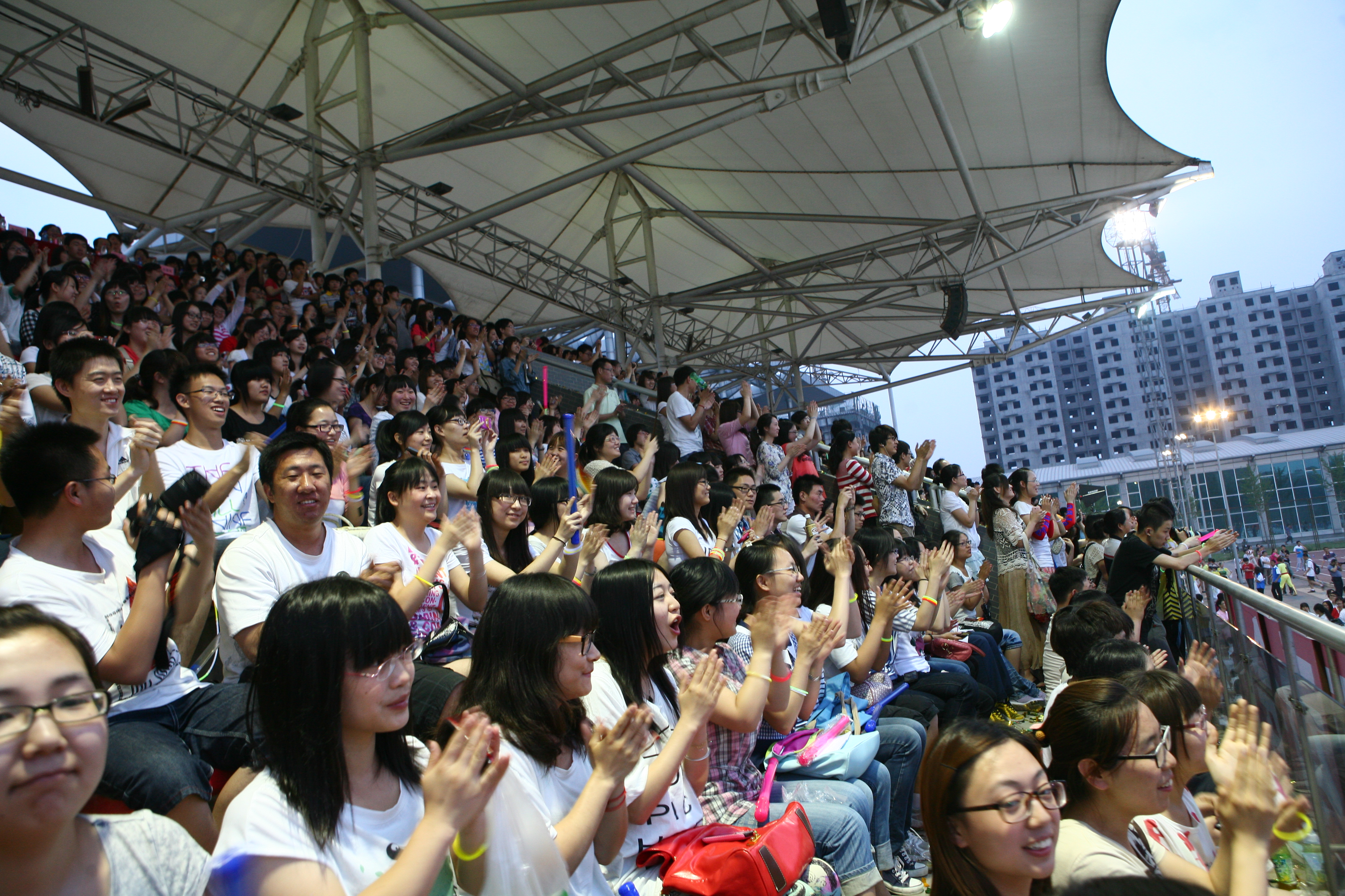 在“齊心協力向前跑”的節目中,來自材料與機械工程學院和食品學院的學生們身穿紅、橙、黃、綠、藍等顏色鮮艷的制服,踏著激情的南非世界杯歌曲《旗幟飄揚》,肩并著肩如同一道道排浪,將開幕式又一次推向了高潮。