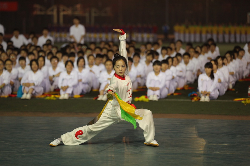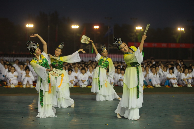 如今,他們又把精彩紛呈的表演帶回到運動會的開幕式上,為全校師生帶來最高水平的演出。古色古香的服飾配上精美的小扇,那抬頭低頭間的溫柔,秀出了《蝶舞花香》古典的美麗。《中國風》節目,武術演員高超的技巧,令觀眾拍手叫好。而《韻律北京》歡快的節奏,火紅的燈籠,跳躍的舞蹈,讓現場頓時充滿歡樂喜慶的氣氛。