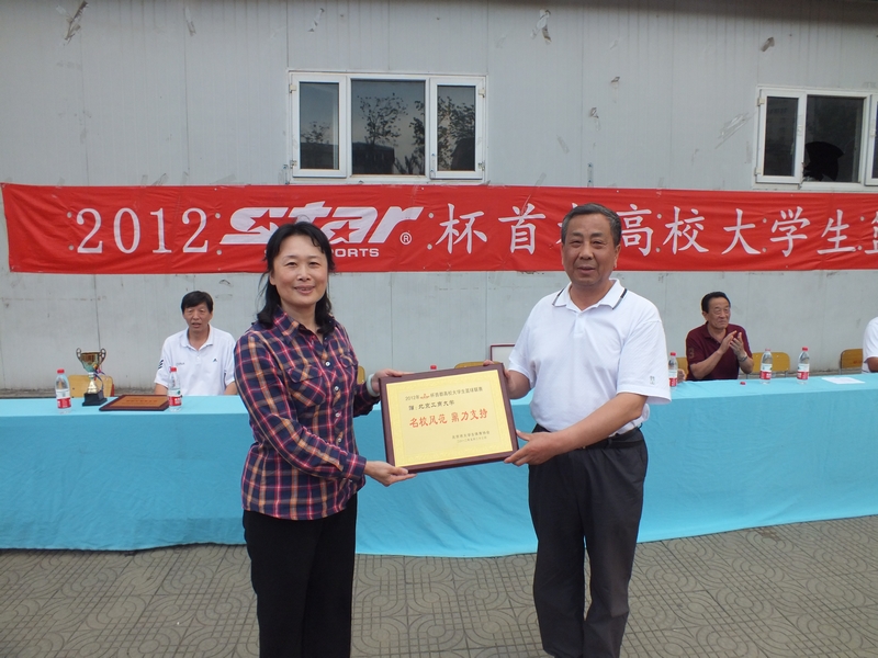 5月23日下午,由北京市教委、市大學生體育協會主辦、市大體協籃球分會協辦、北京工商大學承辦的2012“STAR杯”首都高校大學生籃球聯賽在阜成路西區操場圓滿落下帷幕。北京市大學生體育協會主席杜松彭、北京市大學生體育協會籃球分會名譽主席張健祥、我校體育與藝術教學部主任顧紅出席閉幕式。閉幕式由市大學生體育協會籃球分會裁判、體育與藝術教學部華冰主持。