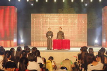 良鄉校區的夜空被絢麗的舞臺燈光照亮,同學們紛紛上臺展示了自己在舞蹈、歌唱、相聲等現代與傳統藝術方面的才華。學院的領導、輔導員和部分教師代表還上臺為同學們獻上一曲《讓世界充滿愛》,每位老師上場都贏得同學們的陣陣喝彩,充分體現了師生之間的濃厚情誼,老師們的演唱將晚會再次推向高潮。
