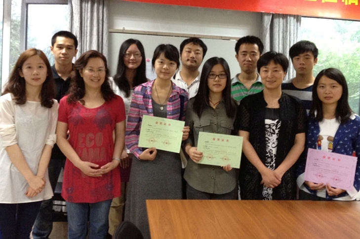 2012年全國大學生英語競賽(NECCS)成績近日揭曉,我校4人榮獲全國一等獎,10人榮獲二等獎,20人榮獲三等獎,我校外國語學院獲得優秀組織獎,4名教師榮獲優秀指導教師。其中,信息092歐陽雯獲C類一等獎,指導教師范燕燕;食品學院應化092曾婷婷獲C類一等獎,指導教師陶爽;計信學院自動092李樹凡獲C類一等獎,指導教師陳秀珍;食品學院生物092曹知之獲C類一等獎,指導教師石洪宇。6月28日上午,外國語學院副院長張衛晴、教學秘書王雪松以及外國語學院團總支書記張悅為獲獎同學頒發了獲獎證書。