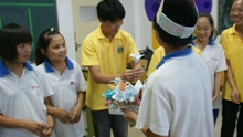 今天對于其他同學是普通的一天,但對于李巍同學卻是有特殊意義的一天。當實踐團的成員們在前一天得知今天是李巍同學的生日后,同學們自發用彩紙、棒棒糖和泡沫板制作了簡易而又溫馨的生日蛋糕,并且在課間,全班同學和實踐團成員一起起立合唱生日祝福歌曲。雖然時間匆忙,條件限制,但看到李巍同學眼里滿滿的感動,大家也都十分欣慰和滿足。