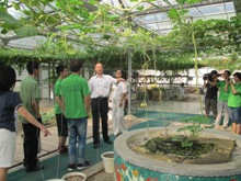 在實踐的三天里,我們實踐團隊把韓村河農(nóng)業(yè)示范點作為實踐基地,各個分隊深入了解了科技蔬菜園的建設(shè)歷史、企業(yè)文化等等。此外,我們還主動積極地投身實踐,在溫室大棚里觀察植物的生長過程,了解科技大棚工作原理。炎炎的夏日,身在溫室大棚的同學(xué)們在每次實踐結(jié)束后都是汗流浹背,盧思鋒等校領(lǐng)導(dǎo)們聽說到這一情況,特地趕到蔬菜基地探望實踐學(xué)生以及帶隊老師。在實驗基地,學(xué)生代表帶領(lǐng)前來慰問的校領(lǐng)導(dǎo)們參觀了蔬菜種植展覽園,并以實踐經(jīng)歷講解了園內(nèi)的各種蔬菜。參觀過程中,盧書記對無土栽培技術(shù)提出了疑問,實踐團成員作出了詳盡的解答。參觀結(jié)束,盧書記贊揚了同學(xué)們不怕吃苦、艱苦奮斗的精神,并提出了“要善始善終”的寄語。