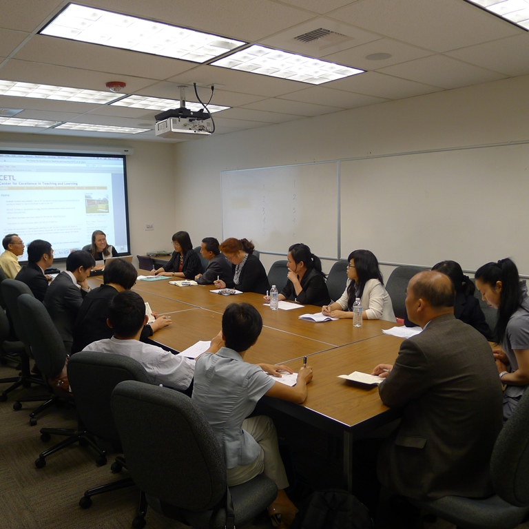 20日上午,UCDAVIS 教學(xué)卓越中心(Center for Excellence in Teaching and Learning)副主任Rosemary Capps博士為培訓(xùn)團做了“如何促進教師教學(xué)能力提升”的專題講座。她指出,美國大學(xué)都設(shè)有一個為教師教學(xué)教法提供咨詢與服務(wù)的專門機構(gòu),由從事教學(xué)教法研究的專家通過隨堂聽課、與教師一對一咨詢、學(xué)生小組討論等方式為那些課堂教學(xué)存在問題或困難的教師提供幫助,從而提高課堂教學(xué)效果,為學(xué)生提供高質(zhì)量的教育服務(wù)。這體現(xiàn)了傳統(tǒng)的“以教學(xué)者為中心”向現(xiàn)代“以學(xué)習(xí)者中心”教學(xué)理念的轉(zhuǎn)變。為此,學(xué)校提供教師業(yè)務(wù)素養(yǎng)和創(chuàng)新教學(xué)能力的平臺,大力支持教師的學(xué)習(xí)與發(fā)展。UCD教學(xué)卓越中心項目中積極而明快的校風(fēng)、追求真理的辦學(xué)理念,追求雙贏、不斷追求卓越的教與學(xué)的理念讓培訓(xùn)團老師們受益匪淺,大家認真記錄,踴躍提問,與Rosemary Capps博士交流探討。