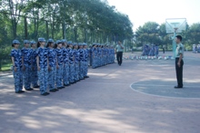 “刻苦訓(xùn)練,勢必爭先,計(jì)信精英,奮勇向前!”嘹亮的口號聲響徹了整個操場,這是二營的同學(xué)們在向?qū)W院領(lǐng)導(dǎo)展示自己的風(fēng)采。