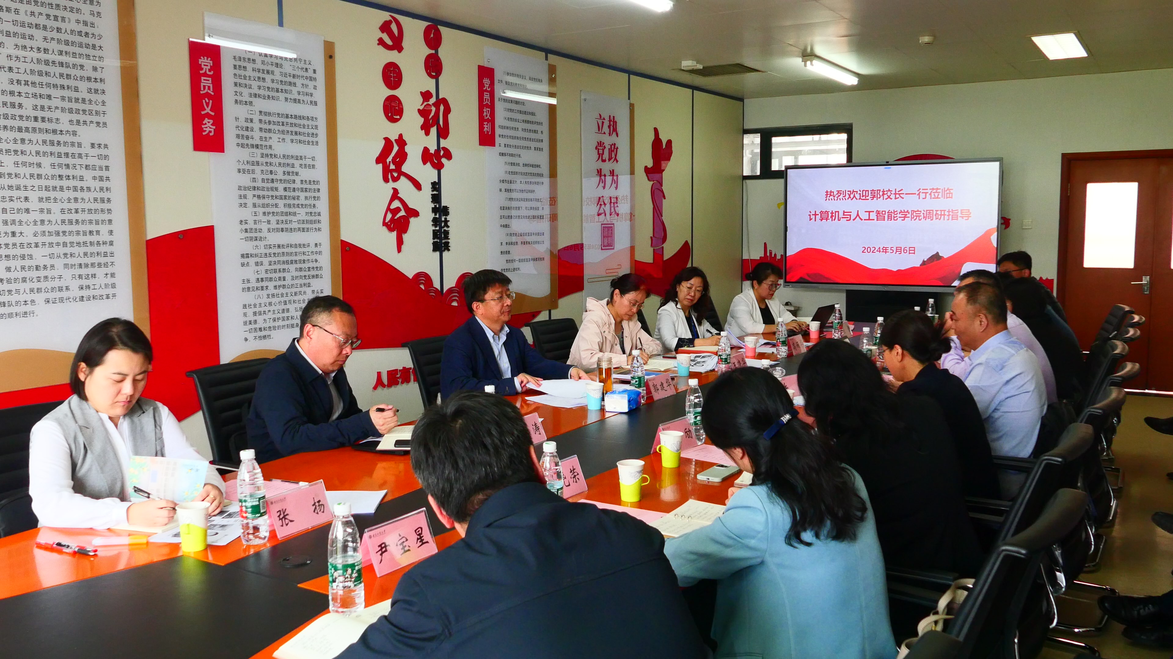 5月6日上午,學校黨委副書記、校長郭建華帶隊到計算機與人工智能學院調研,就學院事業發展、學科建設、科學研究等方面與學院班子成員、教師代表座談交流。學校黨政辦公室主任王曉華、發展規劃處處長吉濤、人事處處長高麗華、黨政辦公室副主任張揚、研究生院副院長張倩、計算機與人工智能學院全體班子成員、系主任及教師代表參加調研座談會。會議由學院黨委書記何猛主持。