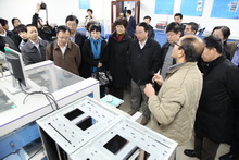 隨后,考察團一行在張德玉副書記的帶領下先后走訪了我校文科實踐中心(國家實踐教學示范中心)、工科實踐中心、圖書館、校史館和藝術樓。相關部門的負責同志認真向高校領導們介紹了我校在開展實踐教學、校史文化建設、提高學生綜合素質和實踐應用能力等方面所做的工作。高校領導們饒有興致地觀看了我校的模擬法庭、證券模擬大廳、校史館、新聞演播大廳等場所,觀看了學生繪畫作品和各種獨具創意的燈具、椅子等工業設計作品。