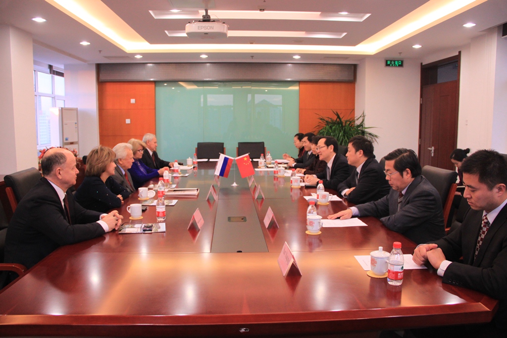 俄羅斯國際經貿學院第一副校長多布萊科娃(Dobrenkova Y.V.)、副校長多維斯奇(Lidovsky Vitaly Ivanovitch)、俄羅斯國立大學人文學院副院長格拉科維•葉維格尼(Gratchikov Yevgeny Nikolayevitch)、校長夫人尼可拉葉(Nadezhda Nikolayevna)隨同來訪。我校國際交流與合作處處長何明珂、嘉華學院執行院長嚴旭陽、國際交流與合作處副處長劉影、材料與機械工程學院副書記楊秀萍、嘉華學院國際交流中心主任潘玉慶參加了會談。