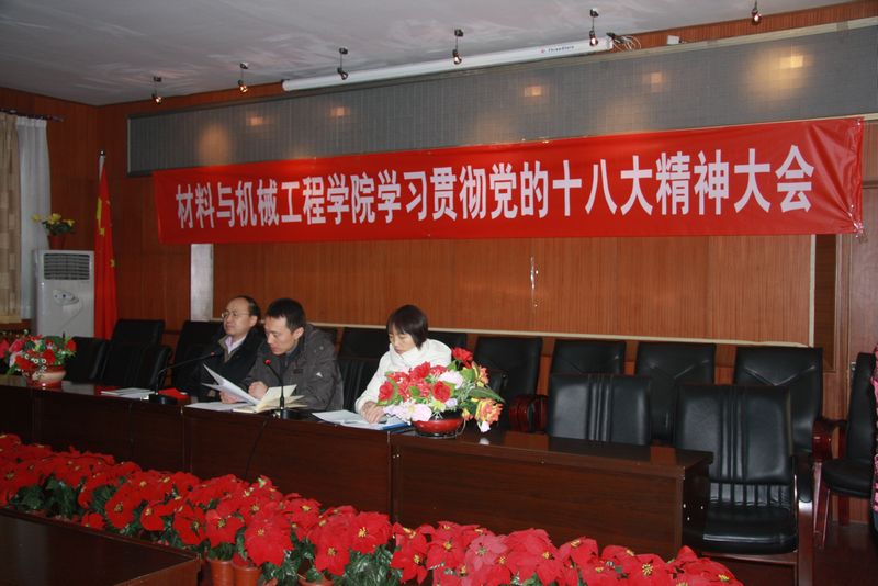 11月30日至12月1日,材料與機械工程學院黨總支召開學習宣傳貫徹黨的十八大精神會議。黨總支書記王向東、院長黃志剛、副院長楊彪、湯曉華參加會議。會議由黨總支副書記楊秀萍主持。