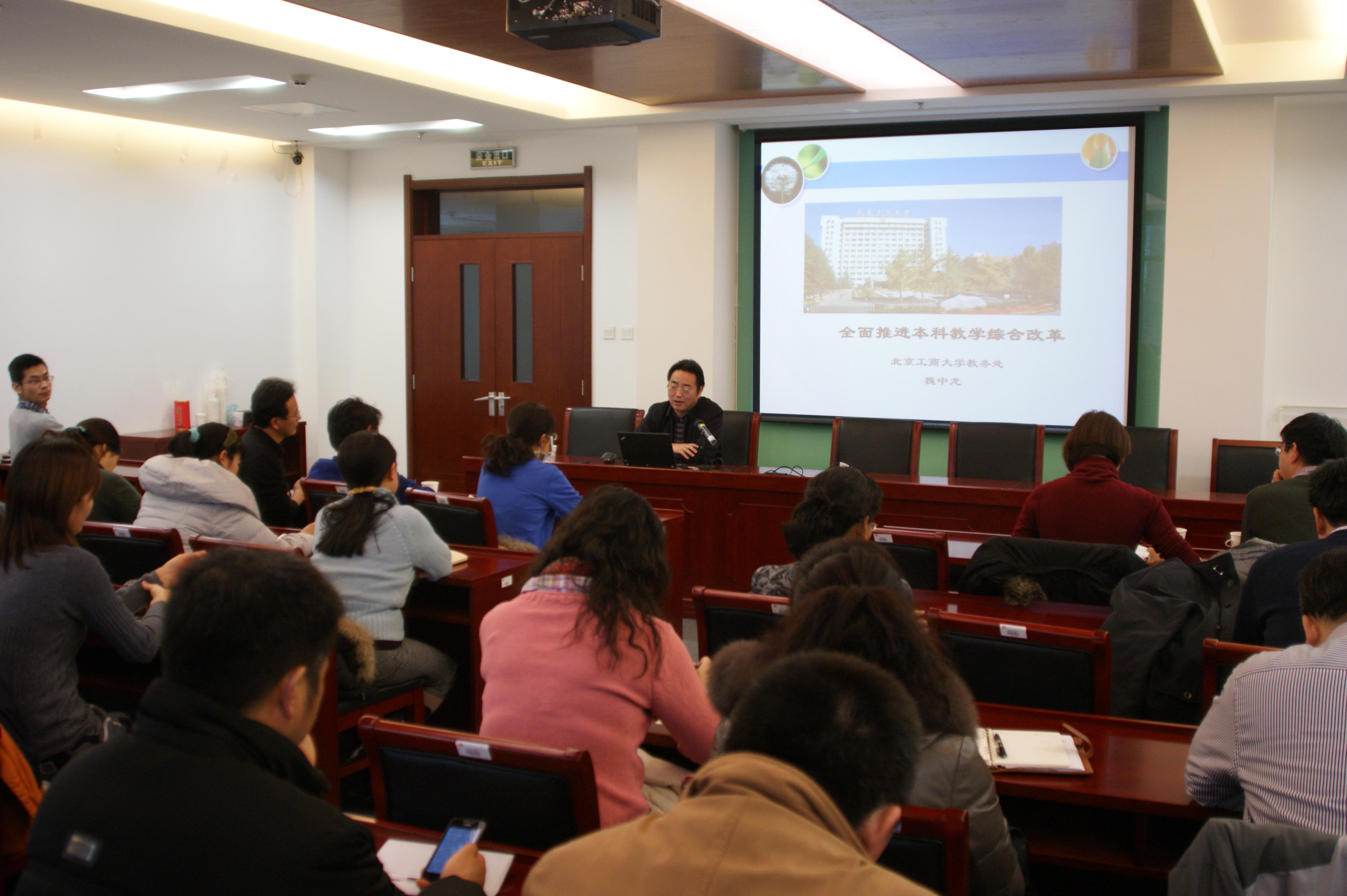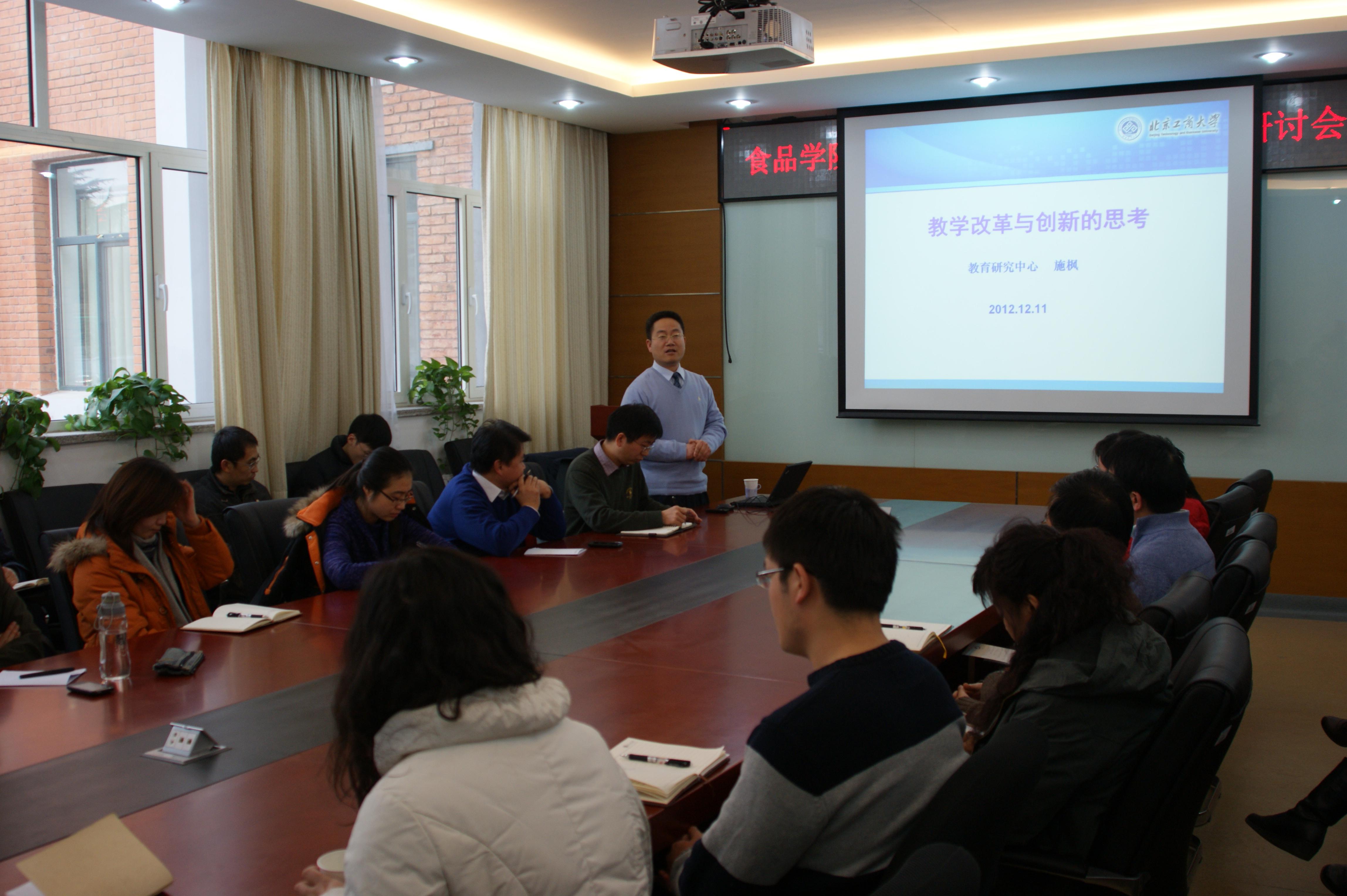 教育研究中心主任施楓做了主題為“教學(xué)改革與創(chuàng)新的思考”的報告,分別從中國崛起的新挑戰(zhàn)、高等教育的國際比較、中國高等教育存在的問題及改革方向、北京工商大學(xué)綜合改革的思考、食品學(xué)院的競爭優(yōu)勢等5個方面進行了深入的闡述和分析。
