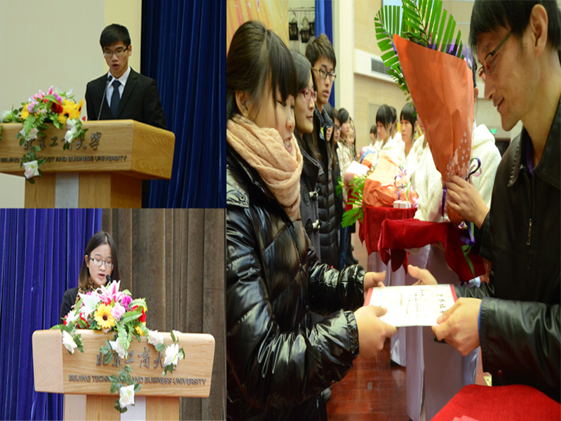 為發揮優秀學生的榜樣作用,激勵學生努力學習、奮發成才,12月19日,經濟學院在良鄉報告廳舉辦了“美在經院 耀在工商”----2011-2012學年度表彰大會。經濟學院黨總支書記周莉、學生處副處長徐紅京、團委書記呂良、經濟學院黨總支副書記馬韜光、副院長李書友、學院全體輔導員、班主任代表以及各年級學生出席了會議。大會由經濟學院團總支書記單紫薇主持。