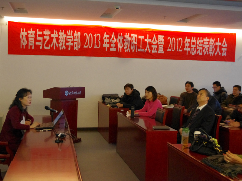 部主任顧紅以大事記的形式回顧了體育與藝術教學部2012年的工作情況,即各位教師積極參與、群策群力,在本科教學綜合改革、教學科研能力提升等方面取得可喜進步;創新工作方式,搭建有力平臺,促進了學科融合;群體活動及運動會、藝術團建設邁上新臺階,各項大型活動取得圓滿成功;藝術團首次走出國門,千人操震撼上演,元旦晚會異彩紛呈;分工會被評為“合格教職工之家”;游泳館各項工作逐漸走向正軌,等等。她指出,以上成績的取得,離不開全體教職員工的積極參與和共同努力。她對各位老師表示衷心的感謝,并希望在新的一年里,全體教職員工再接再厲,共同為部門和學校的發展做出貢獻。顧紅還對2013年的工作重點做了部署和通報。