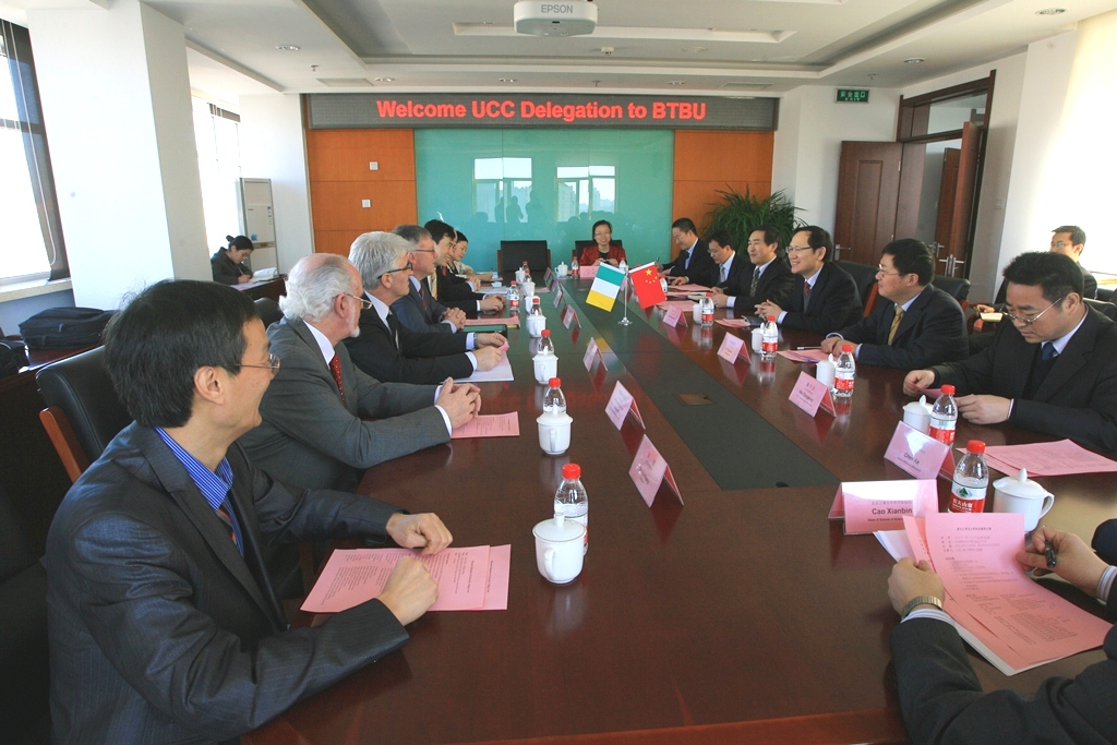 201334日至5日,由愛爾蘭考克大學副校長特雷福•赫爾姆斯(Trevor Norman Holmes)帶隊的愛爾蘭考克大學代表團一行7人訪問我校,就兩校合作辦學項目與我校進行會談。譚向勇校長、李朝鮮副校長在阜成路校區會見了考克大學代表團。