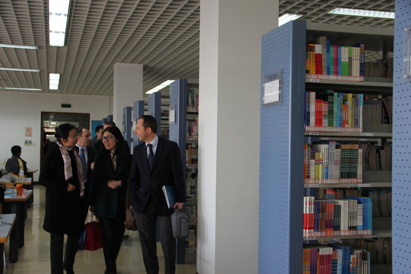 會談前,代表團一行前往良鄉校區,參觀了我校校史館、圖書館、文二樓綜控室、文體館和文科實踐中心,并對我校先進的教學設施、活躍的校園文化和氛圍表示贊賞。