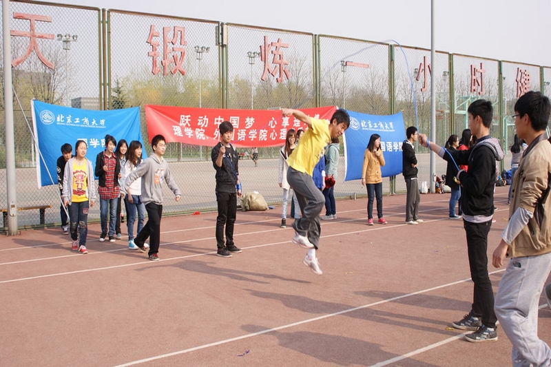 本次趣味心理友誼賽分為五個項目,分別為集體跳長繩、袋鼠跳、排球?qū)|、齊心協(xié)力和迎面障礙接力。隨著比賽的展開,緊張又熱烈的氣氛充滿了整個賽場:在排球?qū)|比賽中,雙方各派兩組隊員出戰(zhàn),外國語學院的同學發(fā)揮穩(wěn)定,在排球隊隊員的帶領(lǐng)下,先勝一籌;在之后進行的袋鼠跳、齊心協(xié)力和迎面障礙接力等趣味項目的比拼中,理學院的同學們齊心協(xié)力、奮起直追,勇奪佳績。