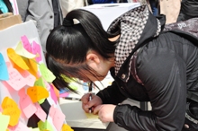 4月24日中午,校團委、學生會、研究生會、紅十字會在良鄉和阜成路校區分別設立四個捐款接收站點。同學們紛紛捐出自己的一份愛心,寫下送給災區人民的祝福。捐款活動現場井然有序,10元、50元、100元……同學們力所能及奉獻愛心,場面溫馨。有同學說到,“雖然自己的捐款對于災區人民只是杯水車薪,但希望能貢獻出自己一份微薄的力量。”