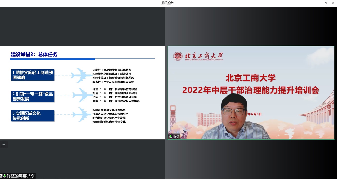 6月8日,學校舉辦2022年干部治理能力提升系列培訓第三講、黨委理論學習中心組(擴大)會,邀請到中國工程院院士、江南大學原校長陳堅教授分享學科建設和科技管理的經驗做法。校領導、全體中層干部參會。會議由學校黨委副書記王偉主持。