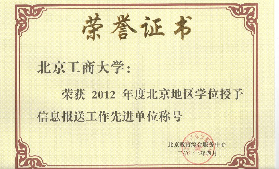 近日,北京教育綜合服務中心下發《關于表彰北京地區2012年度學位授予信息報送工作先進單位及先進個人的通知》(京教綜[2013]03號),我校榮獲“2012年度北京地區學位授予信息報送工作先進單位”稱號,這是自2009年以來我校第四年連續獲得學位信息報送工作表彰。