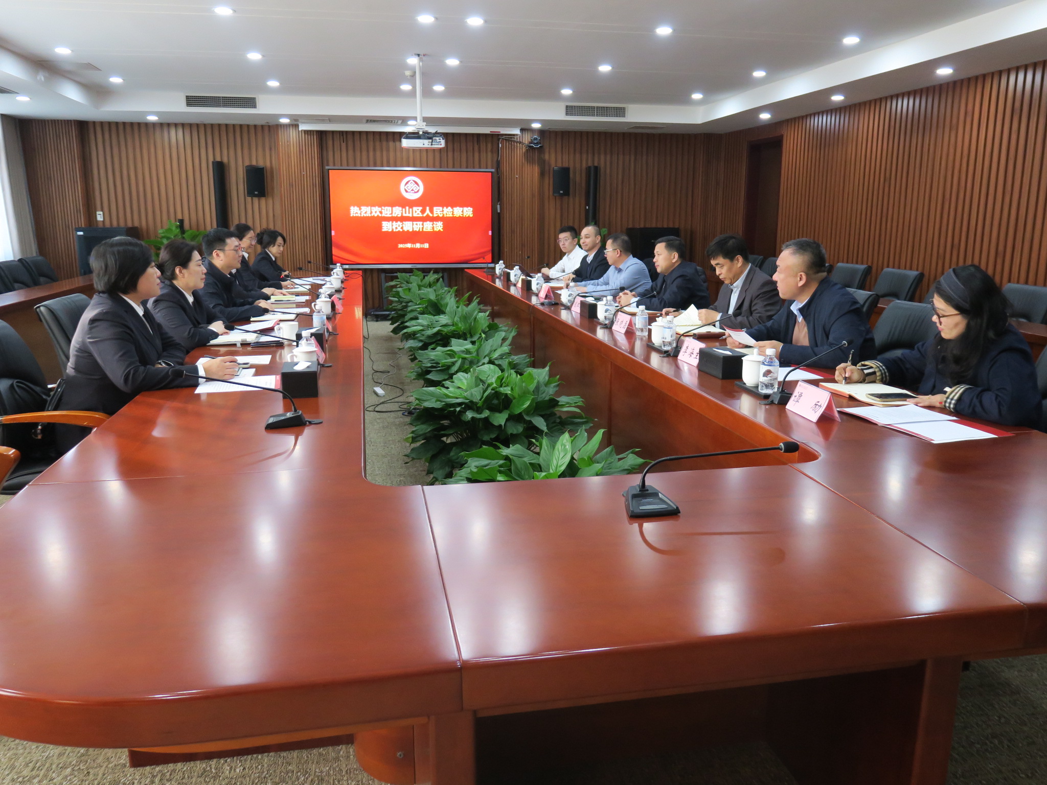 為深化檢校合作,以數(shù)字科技賦能法治建設與人才培養(yǎng),更好地服務區(qū)域經(jīng)濟社會高質(zhì)量發(fā)展,11月11日下午,房山區(qū)人民檢察院黨組書記、檢察長杜邈帶隊,黨組副書記、副檢察長王延文及相關(guān)部門負責人一行來到學校良鄉(xiāng)校區(qū)開展調(diào)研座談。學校黨委常委、副校長寇紅江,國內(nèi)交流與合作處處長張曉磊,法學院、計算機與人工智能學院有關(guān)負責同志參加座談。座談會由黨委常委、副校長寇紅江主持。
