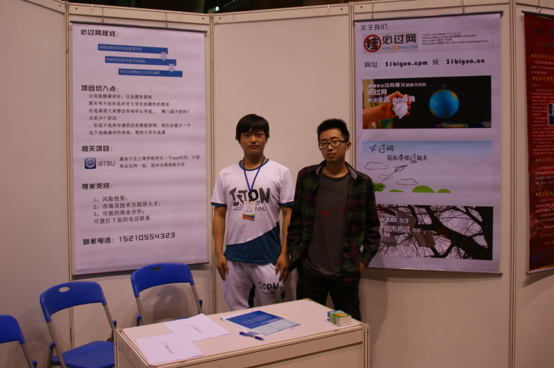 5月24日上午,由北京市教育委員會主辦、北京高校畢業(yè)生就業(yè)指導(dǎo)中心承辦的2013年北京地區(qū)高校大學(xué)生創(chuàng)業(yè)展在中國人民大學(xué)開幕。我校四個創(chuàng)業(yè)項目入選。展會當(dāng)天,我校就業(yè)指導(dǎo)中心主任楊林、負(fù)責(zé)學(xué)生創(chuàng)業(yè)指導(dǎo)工作的卜曉媛與二十余名同學(xué)前往參觀。