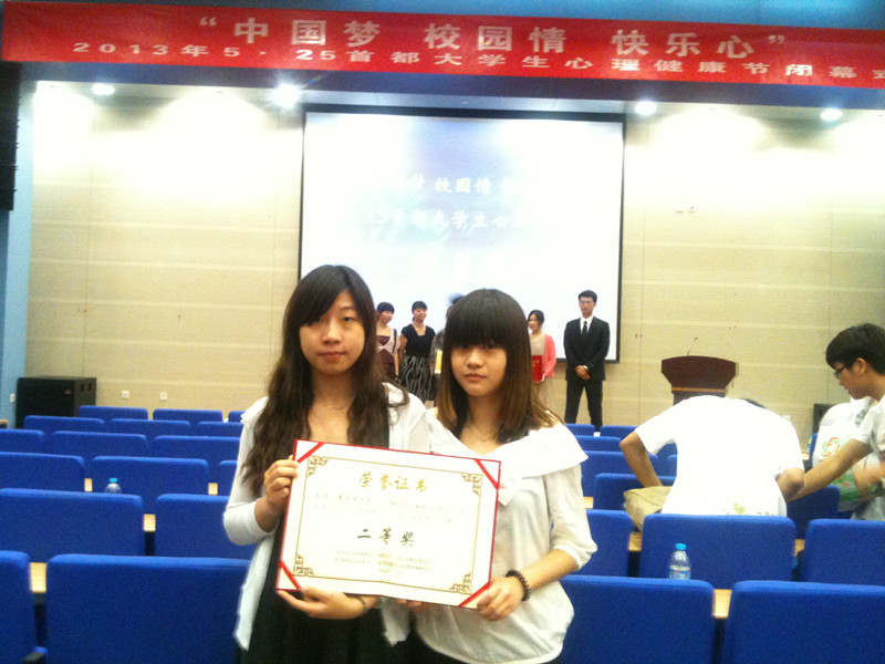 本次心理健康節(jié)活動得到了我校各學(xué)院學(xué)生的熱烈響應(yīng)和積極參與。全校共有70多個班級,累計2000余名學(xué)生參與了多項健康節(jié)活動。上報的參賽項目不僅數(shù)量眾多,而且有較高的質(zhì)量,取得了多項獎勵。在心理健康知識競賽中,我校獲得A區(qū)二等獎;藝傳學(xué)院張晶晶等同學(xué)的微電影《Better Me》獲得北京市二等獎;在主題班會活動評選中,法學(xué)院法學(xué)122班榮獲北京市二等獎,藝傳學(xué)院廣設(shè)122班榮獲三等獎。