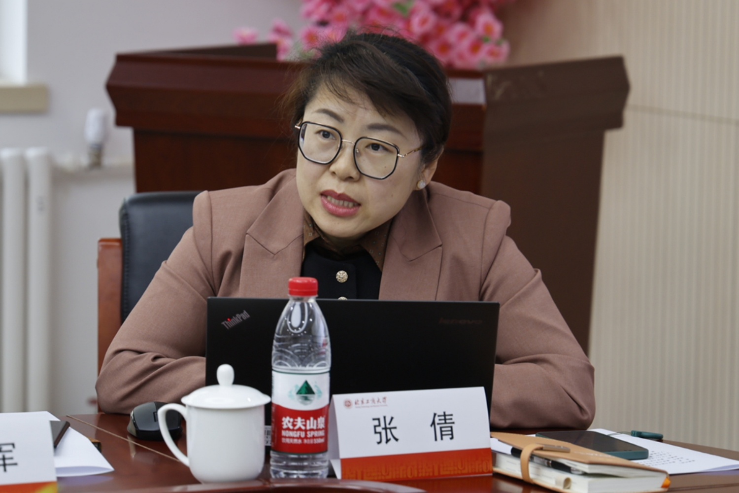 周艷杰感謝學校領導為學院未來的發展指明方向,感謝學校對學院工作的重視與指導。學院將認真貫徹落實領導的指示精神,以更加飽滿的熱情和務實的作風,推動學院各項事業再上新臺階。緊緊圍繞學校“雙一流”建設和高水平研究型大學建設目標凝心聚力、團結奮進。