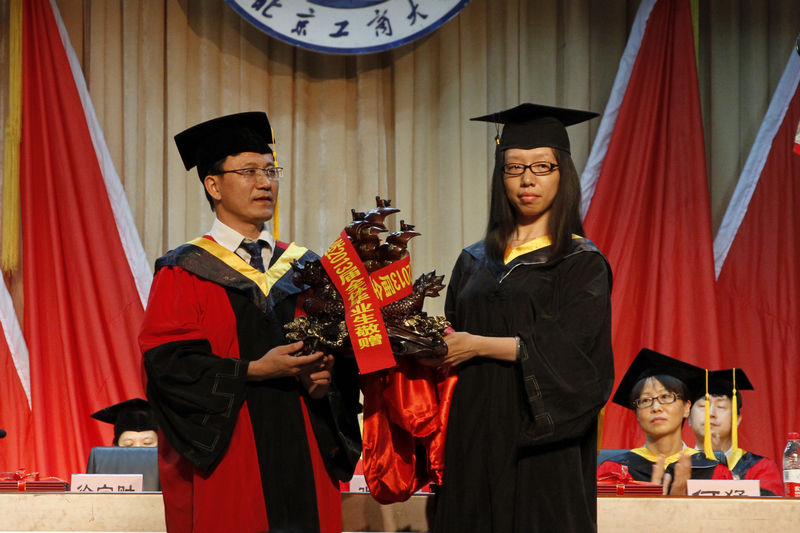 與往年不同,今年的畢業典禮由各學院分別舉辦。在莊嚴的國歌聲中畢業典禮正式開始。學校教務處相關負責人宣讀了《北京工商大學關于2013屆本科生畢業暨學士學位授予的決定》,學院領導為畢業生代表頒發學位證書及畢業證書。學生處相關負責人宣讀了《關于表彰2013屆優秀畢業生的決定》,學院領導為優秀畢業生頒發了榮譽證書。教師代表向學生送出了祝福與寄語。學生代表深情表達了對學校、導師、父母的感謝。歡慶的音樂聲中,出席儀式的領導和老師一起為全體畢業生撥正流蘇、合影留念,共同見證這令人激動和難忘的時刻。