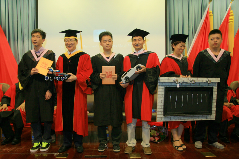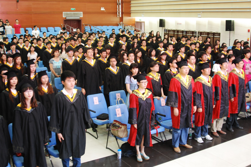 畢業生們逐一接受了在場領導和導師們的扶蘇,在“求真、立德、勤奮、創新,做好人,做有用人,做成功人”的高呼聲中,畢業生們將學士帽高高拋向空中,放飛夢想。