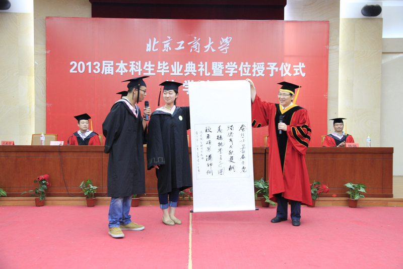 教務處副處長李海生宣讀了《北京工商大學關于2013屆本科生畢業暨學士學位授予的決定》,學院黨總支書記秦巍宣讀了表彰優秀畢業生的決定。09級藝術與傳媒學院共有327名學生順利畢業,15人獲得北京市優秀畢業生榮譽稱號。