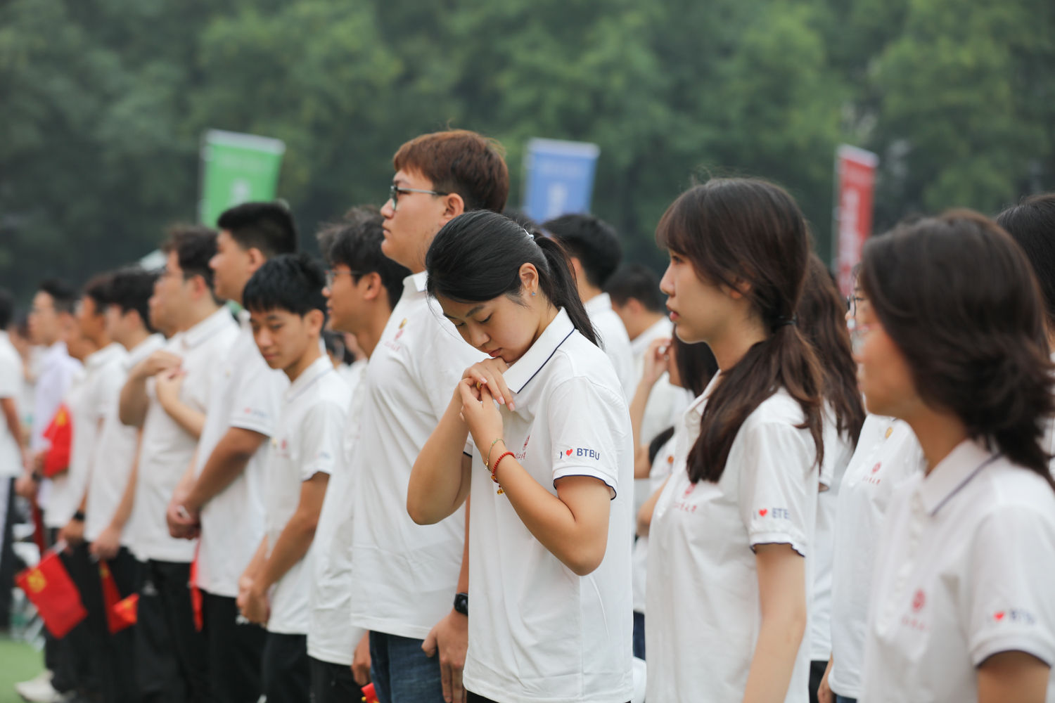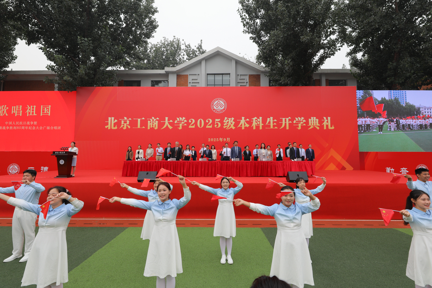 今年是中國人民抗日戰爭暨世界反法西斯戰爭勝利80周年,這堂“開學第一課”也是新生們的“紅色第一課”。典禮前,師生集體觀看《銘記歷史 勇擔使命》北京工商大學紀念中國人民抗日戰爭暨世界反法西斯戰爭勝利80周年專項活動紀錄片,紀錄片展現了我校200余名師生員工服務保障九三閱兵的光榮事跡。回顧了師生們圓滿完成廣場合唱團、志愿服務兩個專項任務,不負黨和人民賦予的神圣使命。
