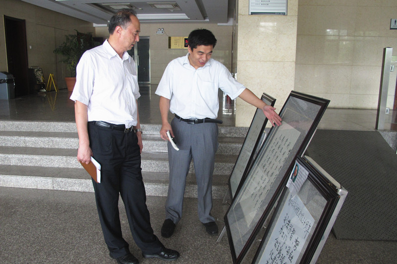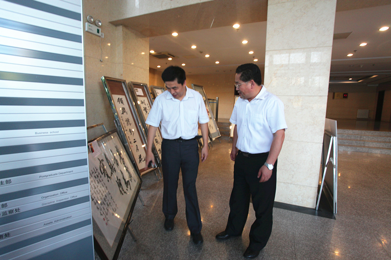 此次展覽展出了黨和國家領(lǐng)導(dǎo)人郭沫若、田紀(jì)云、李嵐清,書畫大師趙樸初、啟功、歐陽中石、米南陽、李鐸、王成喜為學(xué)校的題詞、贈畫,凝聚著他們對學(xué)校的關(guān)愛和深情。學(xué)校領(lǐng)導(dǎo)參觀展覽時表示,館藏的實(shí)物是不可再生的文化資源,是承載校園文化的重要載體,要加強(qiáng)檔案館館藏的保護(hù),落實(shí)檔案管理的“八防”要求,把檔案保護(hù)好;館藏書畫精品展有利于學(xué)校的校園文化建設(shè),也向廣大師生展示了學(xué)校的薪火傳承與文化積淀,要加強(qiáng)館藏資源的利用,以增進(jìn)師生們對校史文化的了解;加強(qiáng)檔案的收集,特別是實(shí)物檔案收藏管理。