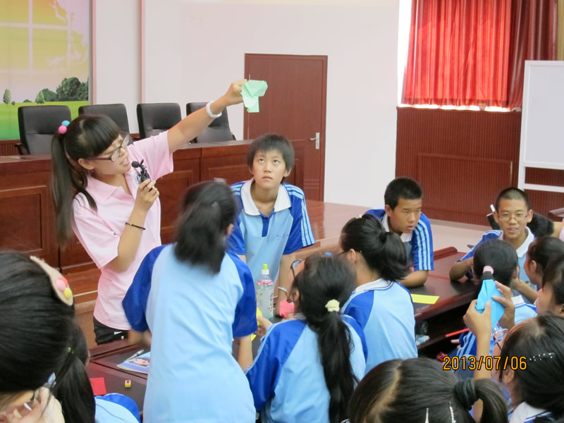 活動之后,孩子們迎來了第一節手工實踐課。看到實踐團員們親手做的手工作品,孩子們產生了強烈的好奇心,迫不及待地動起手來。紀夢迪,李紅巖等小老師生動耐心地講解如何折紙玫瑰,不一會兒,一朵朵美麗的玫瑰盛開在孩子們的手中,一張張笑臉印在了小老師們的心間,一個個夢想在孩子們心中生根。