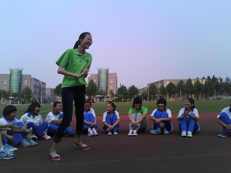 啟動儀式結束后,實踐分團與良鄉五中的同學按組配對形成四個班級,各班通過交流合作完成了班名、口號、班歌等班級建設。隨后,各班級到操場進行了素質拓展活動,通過“貼人游戲”、“猜詞游戲”等活動,班級里的成員更加熟悉彼此,也增強了班級的凝聚力。